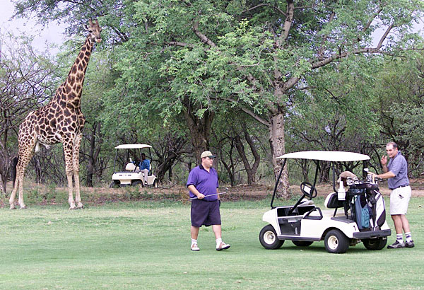This giraffe, at Hans Merensky Golf Course, in Phalaborwa, South Africa looks like he wants a go at it!