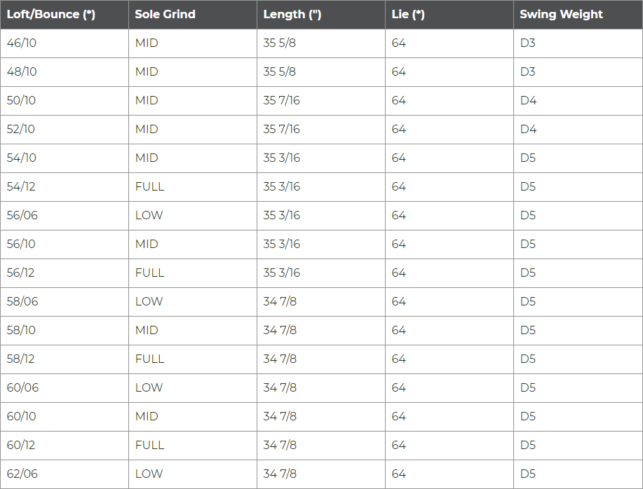 | WEDGE | 128 g | .600″ | MID-HIGH |